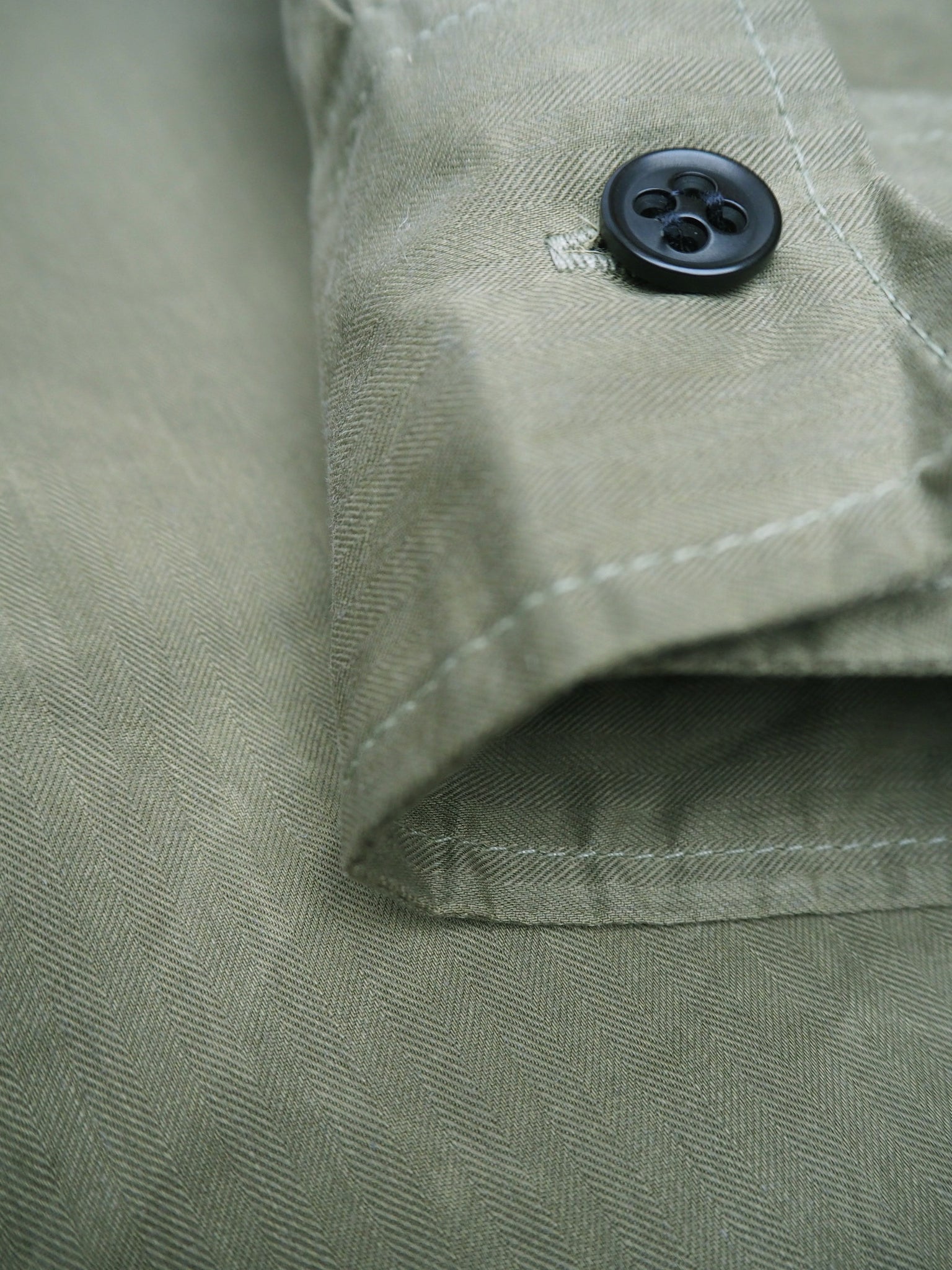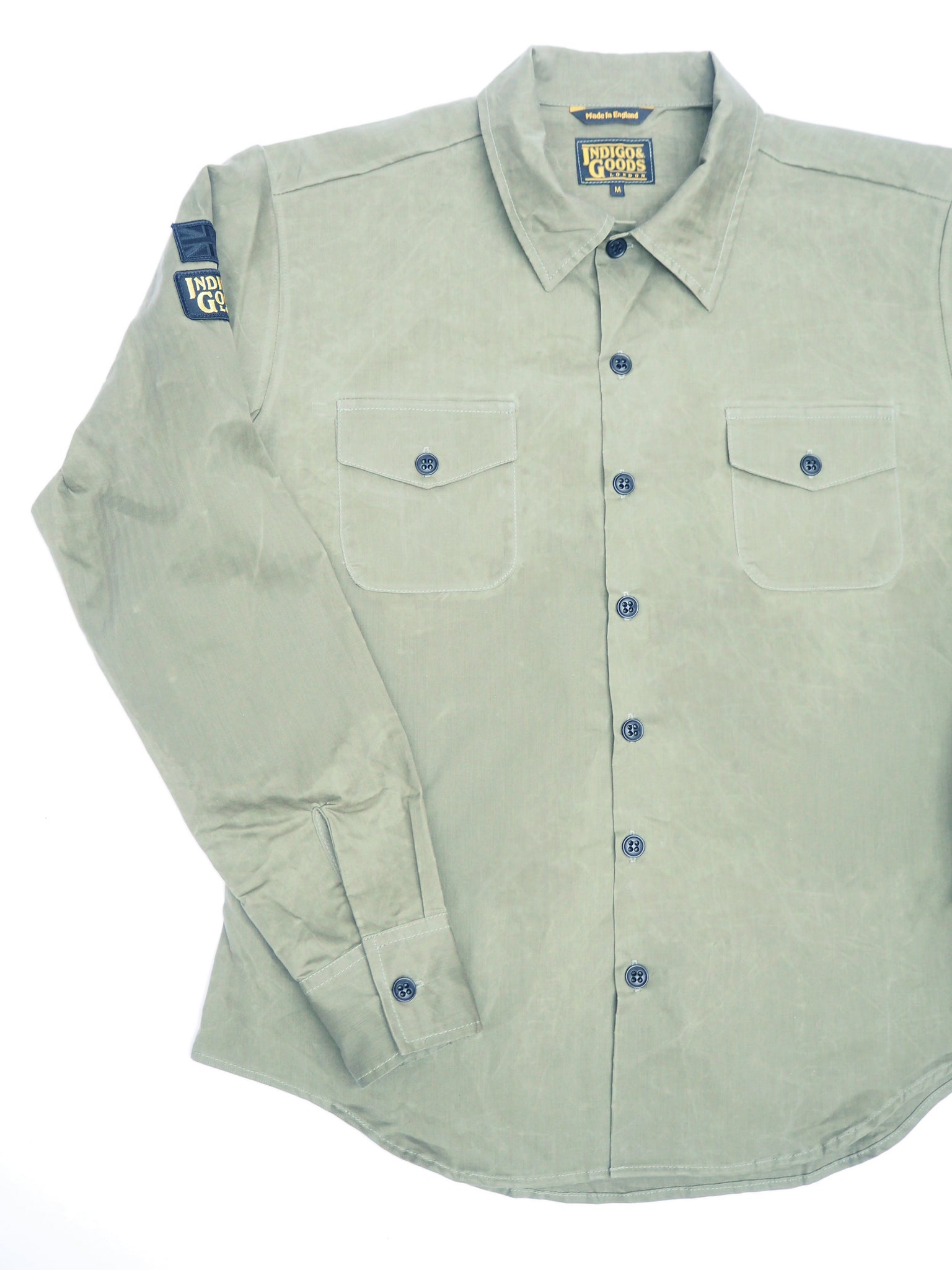 English Prison Patch Long Sleeve shirt - Light Olive herringbone
