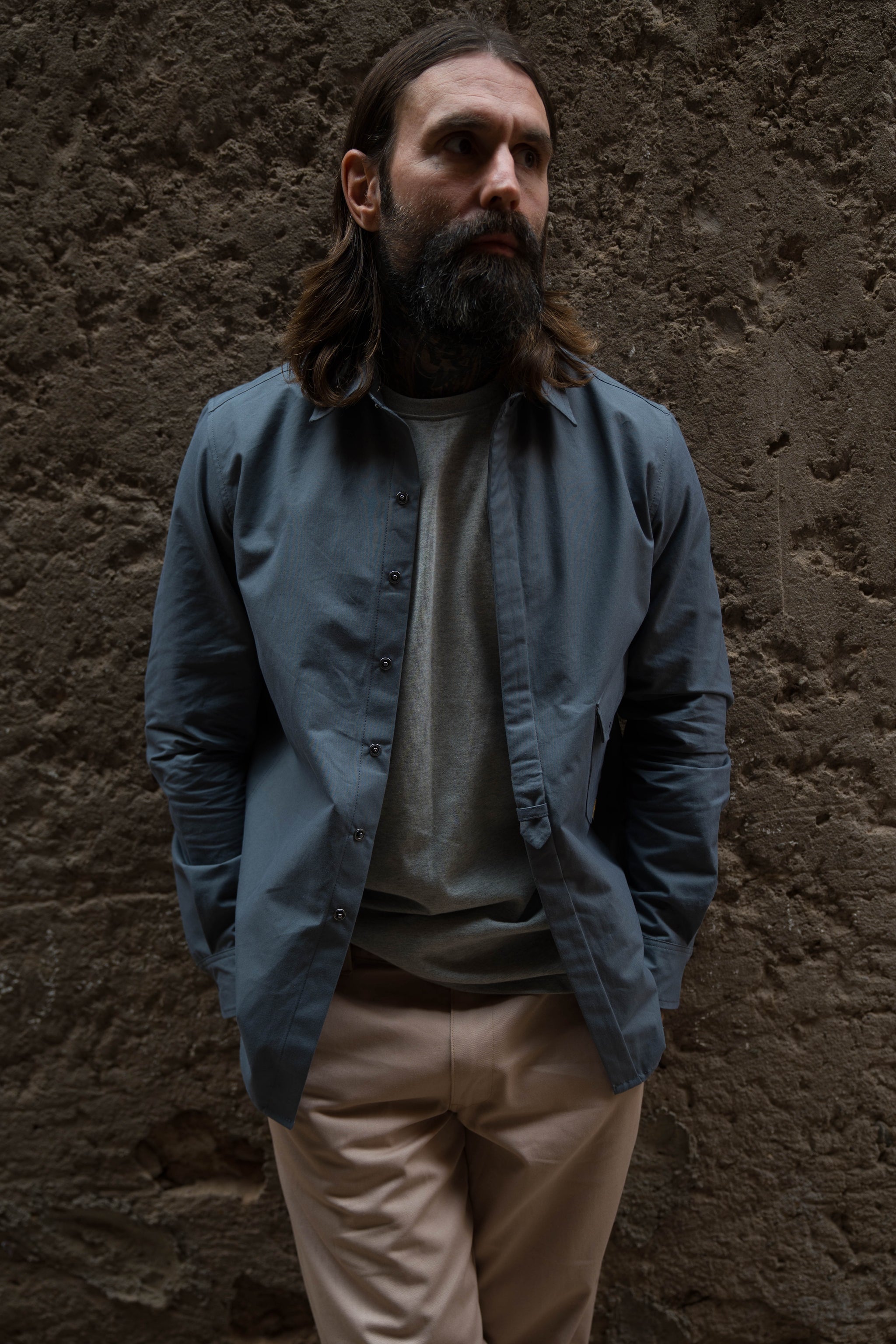 Drop Pocket Shirt - MidWeight Cotton - Slate Grey