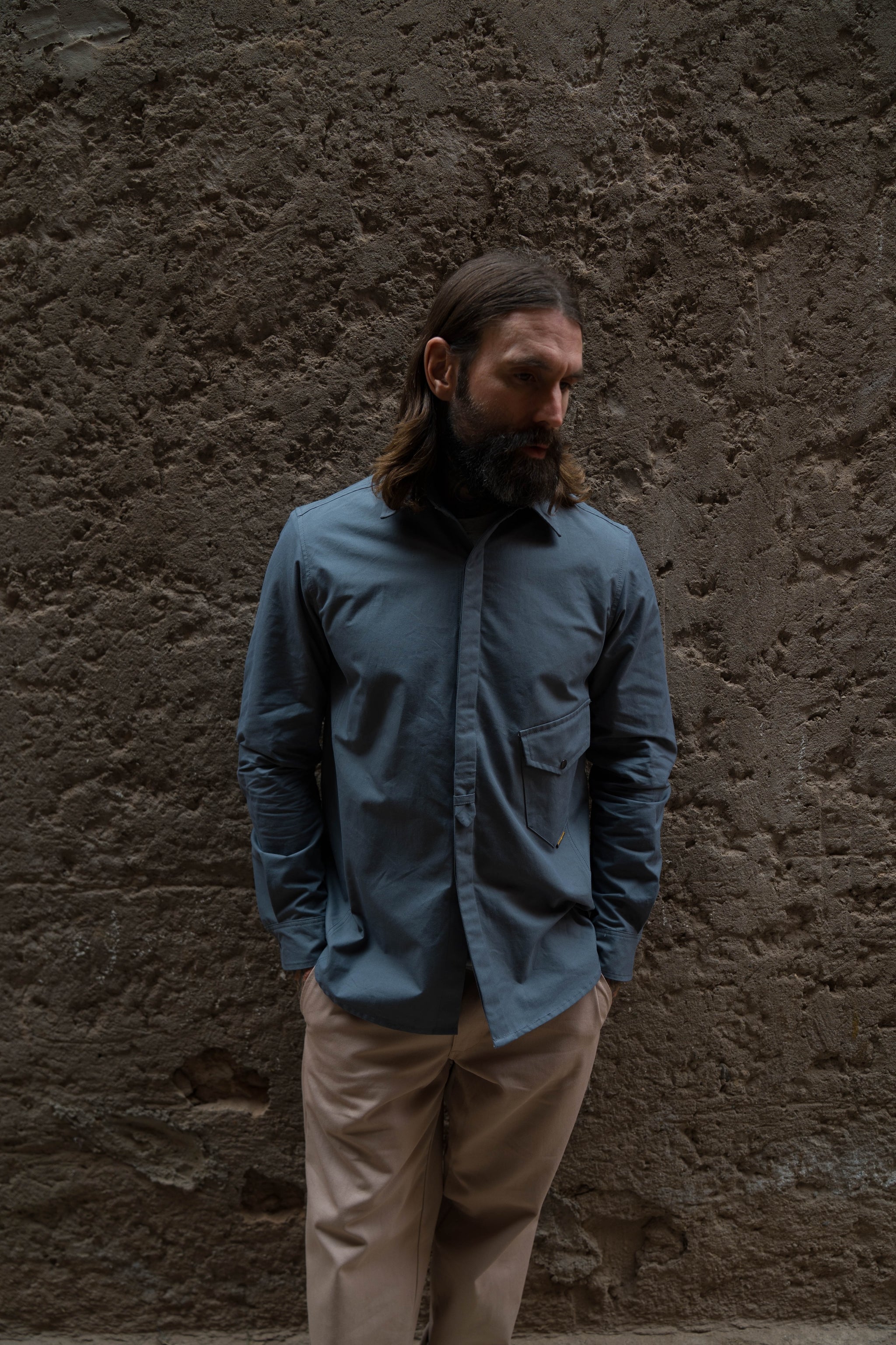The Drop Pocket shirt is a paired down workwear shirt in a slim fit.