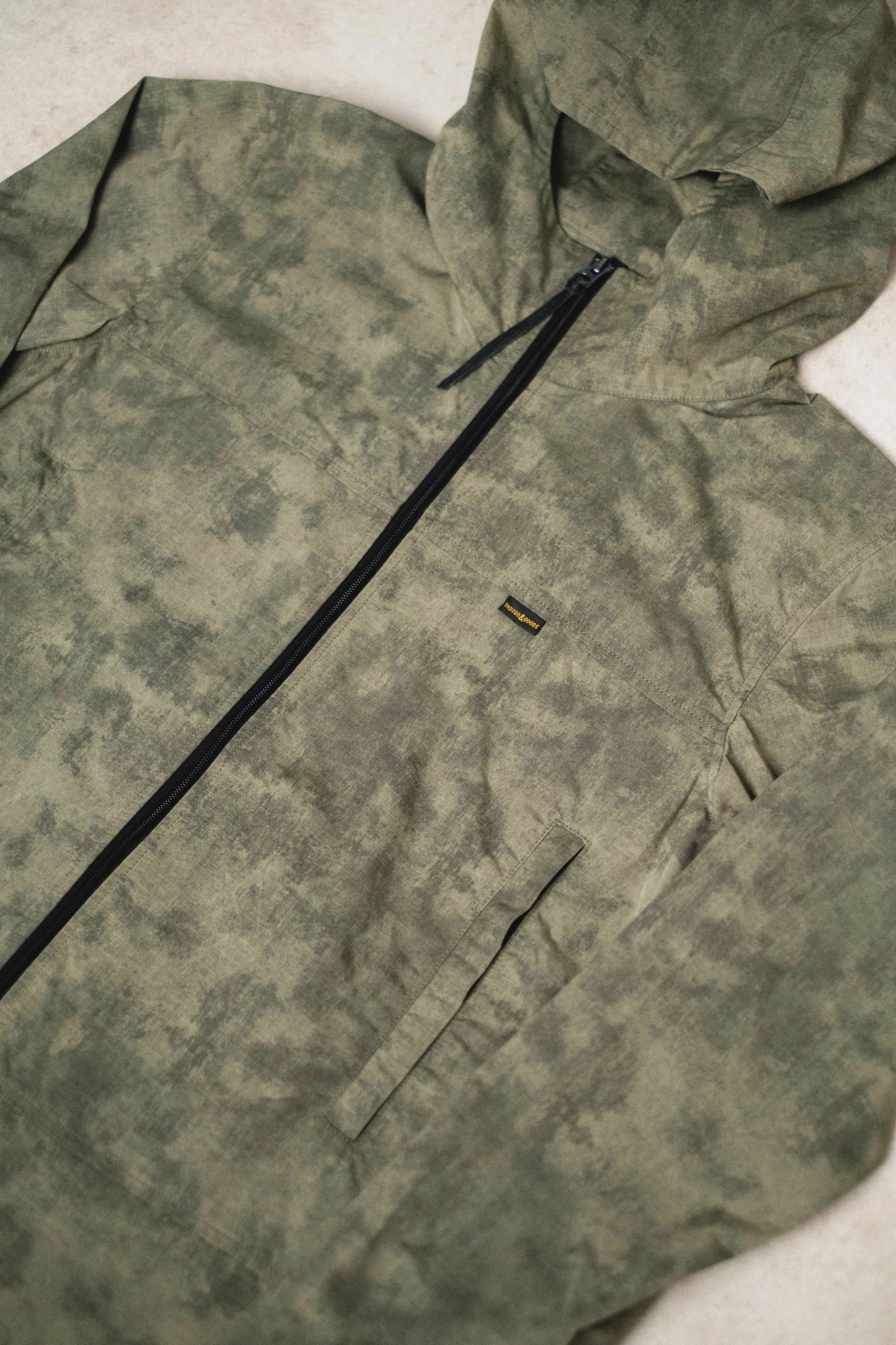 Made from a nylon cotton ripstop construction, (Ripstop was originally used for parachutes in WW11 to "stop rips"), the fabric has been impregnated with a special dry wax treatment. This ensures the jacket will not only perform, but will also age nicely and show wear in all the right places.