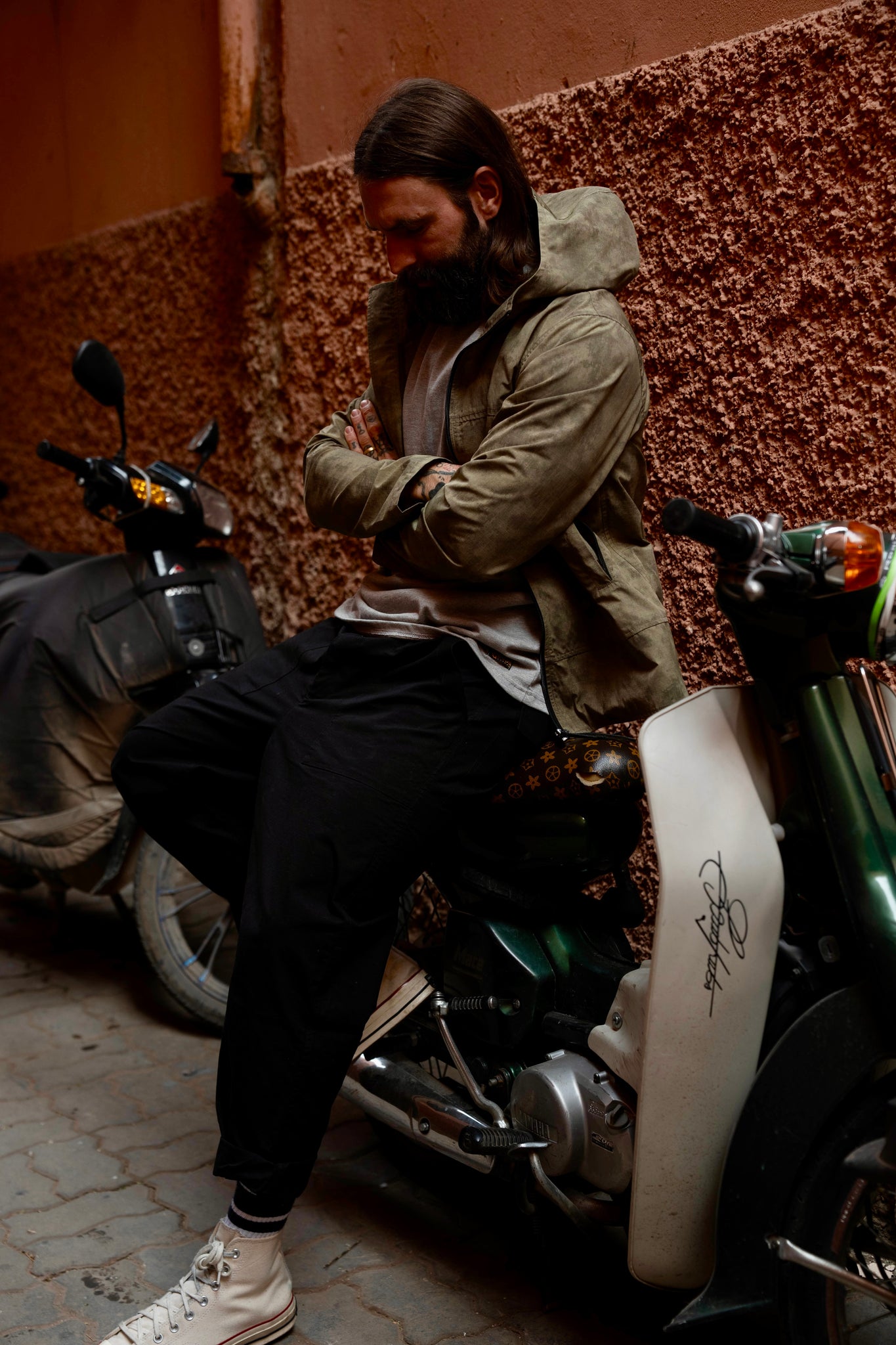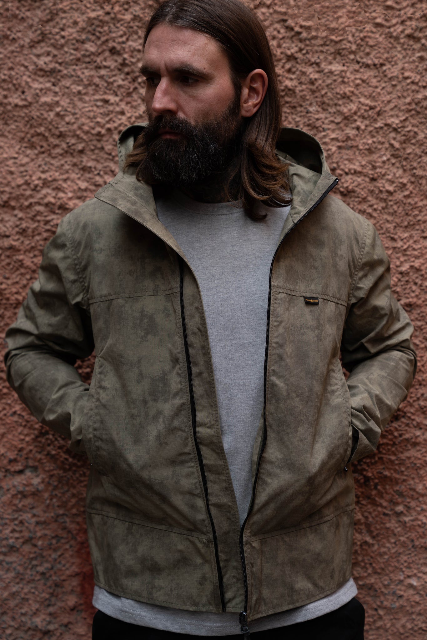Inspired by a vintage paratrooper style. This style features high throat zip at centre front with leather pull, and zippered chest pockets big enough for all your essentials. A contoured snorkel hood (worn up before zip up) that looks as good worn up as down.
